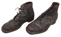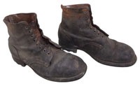 mauvais état, des trous et déchirures. Nombreuses marques d’usure. Sans lacets. A nettoyer et à restaurer. Longueur de la semelle en dessous 30,5 cm.