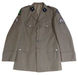 Algérie. Raccourcie en bas, avec ajout d’une patte à bouton. Deux trous au dessus de la poche de poitrine droite. Brides pour un placard de décorations au dessus de la p ... (Lire la suite)