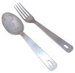 marques d’usure. Fourchette en inox, marquages Durinox ARMEE. Cuillère en aluminium, marquée Vego.